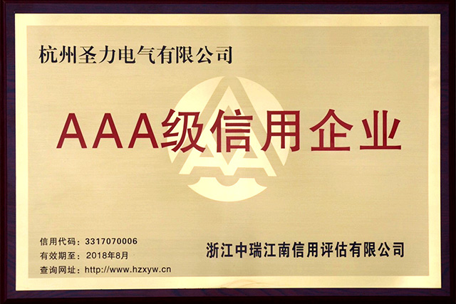圣力控股集團(tuán)?杭州圣力電氣有限公司被評(píng)為“AAA級(jí)信用單位”